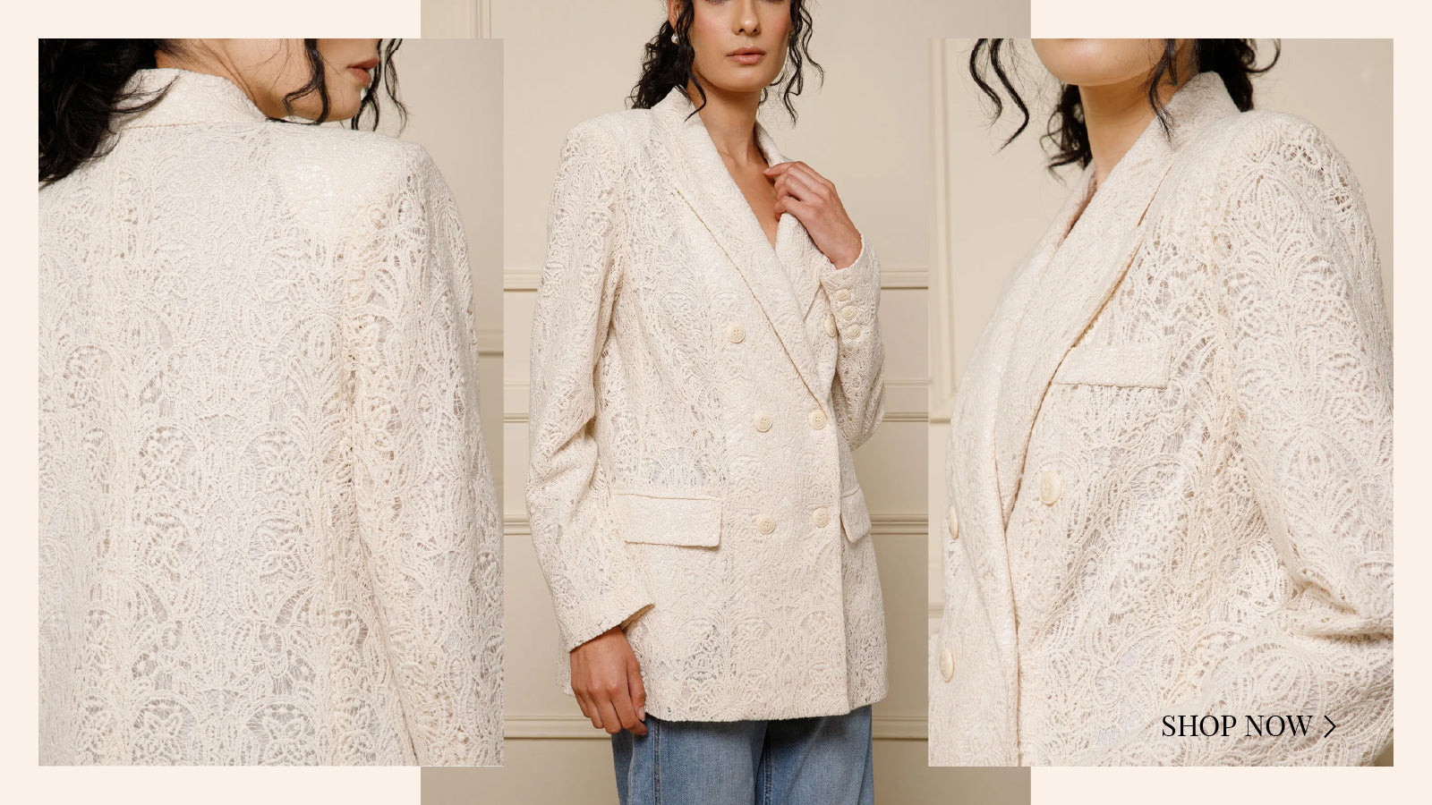 Regular price Rs. 5,799.00Regular priceUnit price / perDouble Breasted Beige Lace Blazer